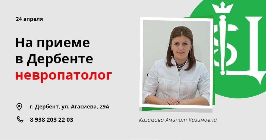 Курбанова Асият Абакаровна работает в сфере неврологии. Неврологи в своей работе сталкиваются c разными патологиями нервной системы. Диагностировать их удастся уже на ранних этапах, своевременно заметив присутствие таких симптомов, как внезапная потеря сознания, частые головные боли, дискомфорт в области позвоночника, шум в ушах, мигрени, головокружение или скачки внутричерепного давления. Асият Курбанова проанализирует все основные данные для постановки диагноза, после чего назначит схему лечения в зависимости от вашего текущего состояния.